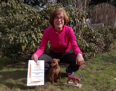 2019 nahm Carola mit Printe das erste Mal an der Deutschen Meisterschaft des PSK teil. Die beiden erreichten einen wahrhaft respektablen 9. Platz und ließen die Pinscher- und Schnauzerfreunde aufhorchen.